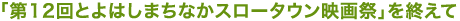 ■上映会場:名豊ビル8階コミュニティーホール 他 ■上映作品:17本、総上映回数:25回、総入場者数4,553名 「第12回とよはしまちなかスロータウン映画祭」につき無事終了いたしました。 今年も多くの皆様にまちなかでお楽しみいただくことができました。概要は下記のとおりです。 映画上映:8日間全16作品(24回上映)を上映し、会場を名豊ビルに移した第4回映画祭以降で最高の入場者数となりました。特に満を持して上映した『黒部の太陽』や『舟を編む』では、用意した座席数を超える満員御礼。また今年の市民投票では「あなたが映画祭で観たい名作洋画!」と称して、実行委員会が厳選した名作洋画10本の中から映画祭で見たい名作洋画作品を募集。『グレンミラー物語』や『バンド・ワゴン』、『シェーン』、『卒業』の4作品を選出、上映しました。