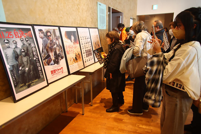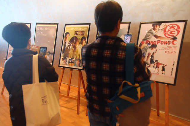 映画は井浦さんのデビュー作「ワンダフルライフ」(1999年)と、実在の若松孝二監督役を演じた「止められるか、俺たちを」(2018年)の2本。ホワイエでは井浦さんの出演作品ポスター12点が並び、出演作品のパンフレットや書籍・Tシャツなどのグッズ販売も行われました。
