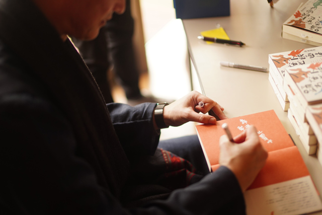 豊川堂さんの協力の下、講師が昨年10月に出版した単著「インド映画はなぜ踊るのか」(作品社)の販売も行われ、即席のサイン会も実施されました。