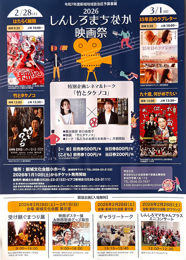 2/28(土)・3/1(日)新城文化会館を会場に「しんしろまちなか映画祭2026」が開催されました。