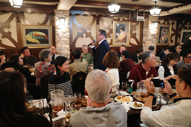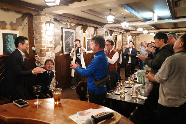 今回6名の方がニューカマーとして初めて会に参加されました。各々自己紹介を含めてご自身の「想い出の映画一本」をご紹介いただき、会を盛り上げていただきました。大変盛り上がった懇親会もサーラコーポレーション山田恭三さんの中締めで締めくくり。